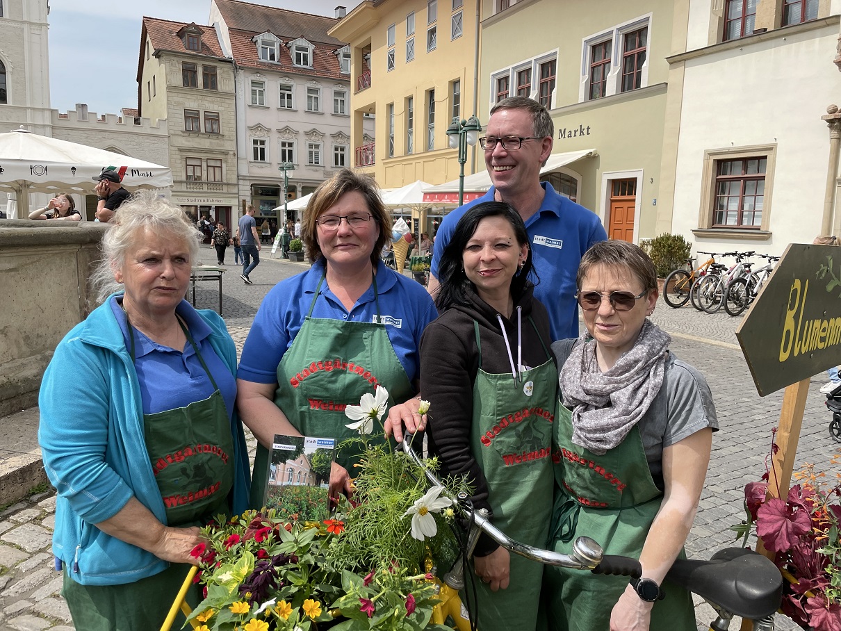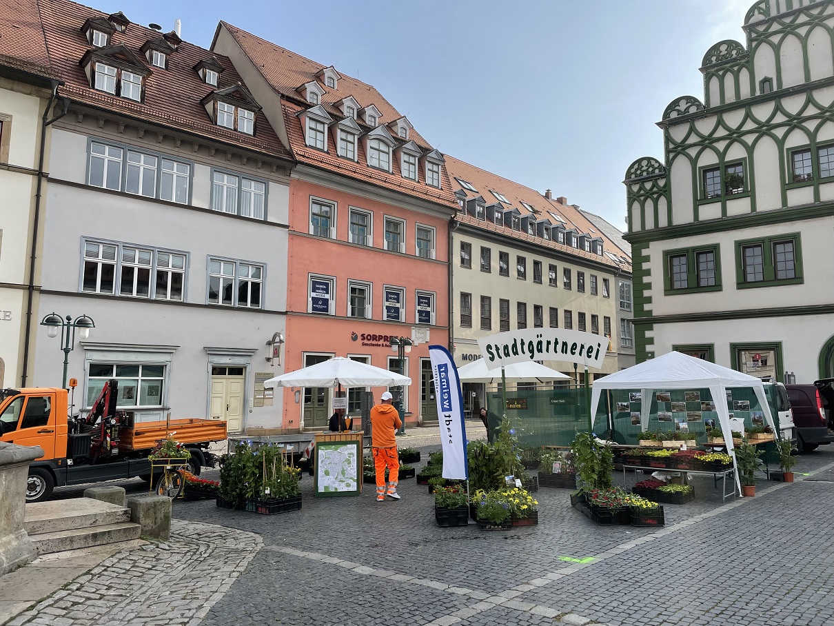 Die Finanzierung der Sachmittelspende in Höhe von 1.200 Euro erfolgte aus den Einnahmen der Stadtgärtnerei anlässlich der Teilnahme am 25. Weimarer Blumenmarkt am 21. Mai dieses Jahres.