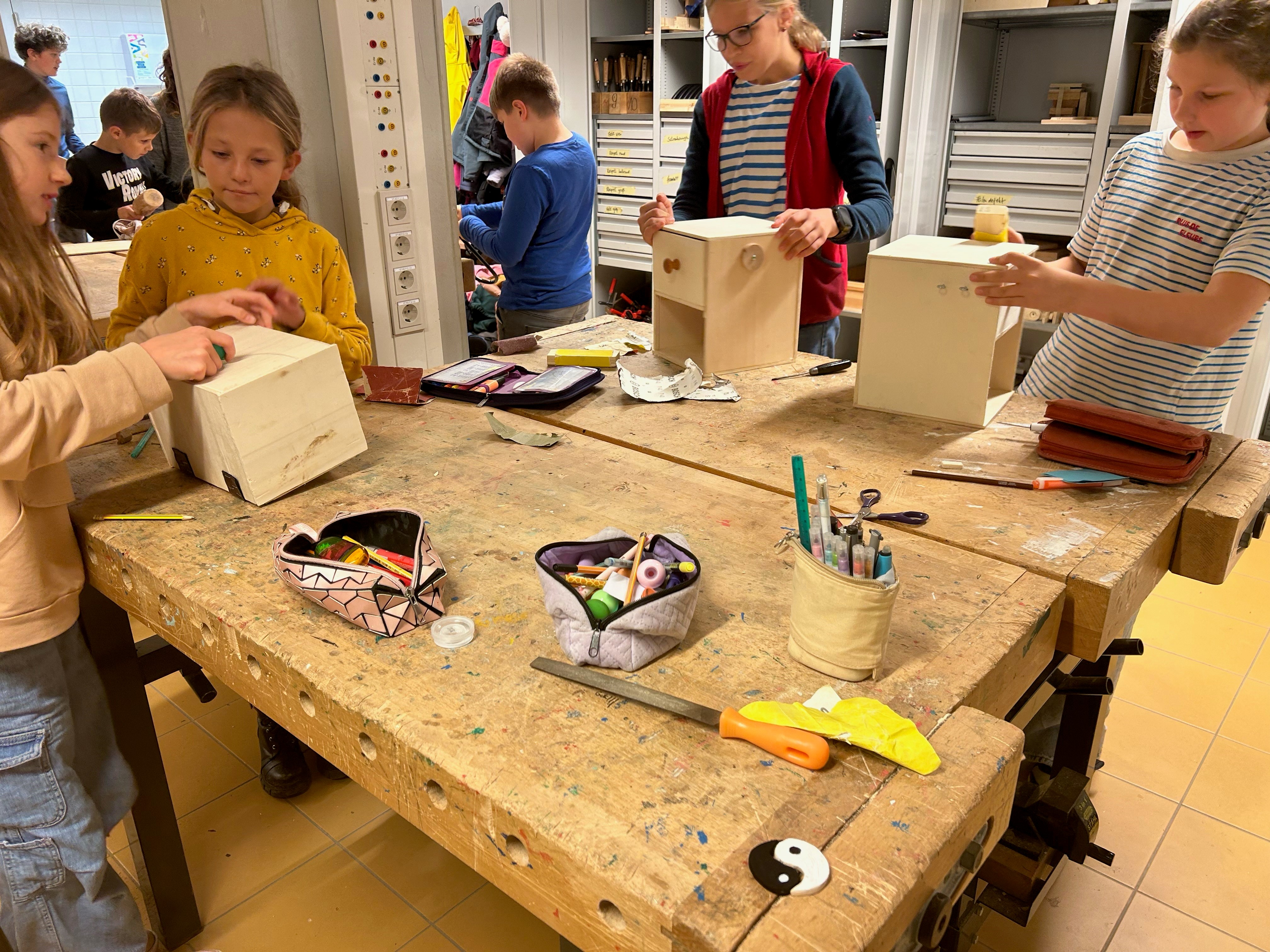 Am Donnerstagvormittag erhielten die Stammgruppe der Elche und ihr Lehrer Michael Kasper während des Unterrichts im Fach Technisches Werken Besuch vom Kommunalservice Weimar.